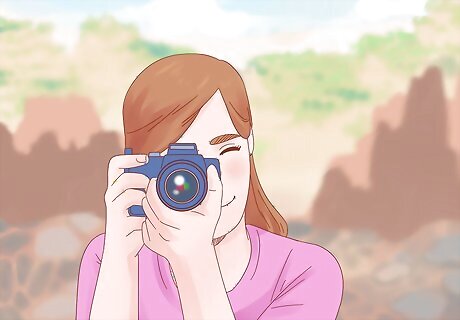 Hold the camera steady so the photos aren't blurry. A monopod is a great tool for holding your camera steady as you're photographing, but if you're in the audience and don't have access to a monopod, hold the camera steadily in your hands. Hold your palm up and place the camera on it, using the other hand to press the shutter button. If you're still having trouble holding your camera still, trying taking the photo in between breaths.