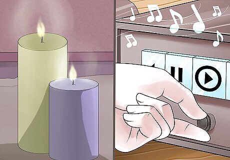 Create a relaxed atmosphere. Purchase candles, relaxing music, or whatever sensory equipment will help you feel calm. Set them up in your birthing area prior to your due date. The use of lighting and soft music helps many people relax during labor. Ask your doula about any other pain management techniques.