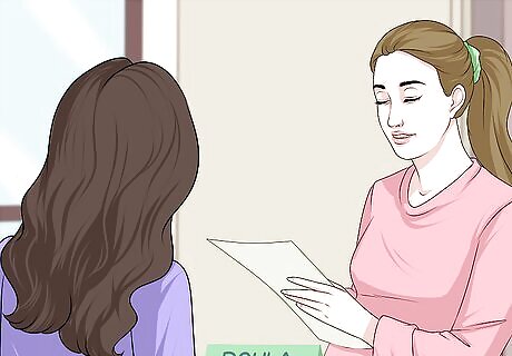 Consider hiring a doula. Doulas are experts in pain management and provide physical and/or emotional support to the woman giving birth. Doulas will often do prenatal and postnatal visits in addition to attending the birth itself. You can also hire a doula to attend only the birth or assist after the birth. Like midwives, doulas go through a certification process and are trained in assisting pregnant people. Seek referrals from other people who have worked with doulas, or consult with organizations that specialize in maternity. Investigate the cost. Doula fees range from $500 to $3,500 depending on the service you request and the area in which you live.