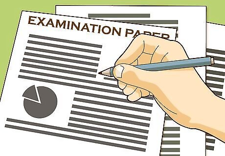 Take the exam. On the day of the exam, you may be asked to come early. Be sure to bring your photo ID as well as any materials you will need to take the test, such as pencils or an approved calculator. Get plenty of rest the night before, and eat a good breakfast. Some exams are several hours long with breaks so be prepared. Read up on the exam before you take it. Find out if it is a written exam or if it is taken on a computer. Learn whether you will be doing multiple choice questions, essays, or written equations before you take it. Each exam will require you to bring different forms of ID and supplies with you. In general, however, you will not be permitted to bring personal items such as phones, wallets, or purses into the testing room with you.