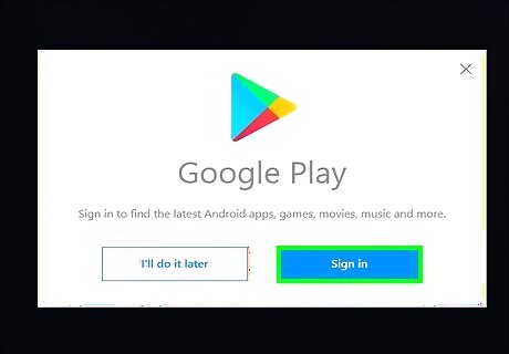 Click Sign In twice. First, click the blue button that says Sign In to open the Google Play Store sign-in screen. Then click the green button that says Sign In to sign to the Google Play Store with your Google Account.