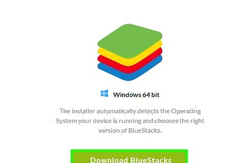 Click the Download BlueStacks button. It's the green button on the left side of the page. This will download the installer for the latest version of Bluestacks. It's fairly large and may take a few minutes depending on your connection.