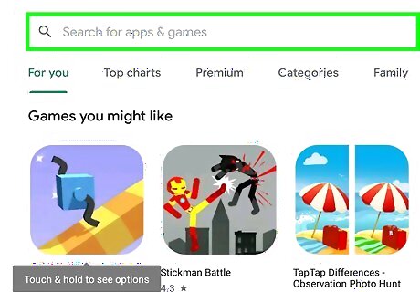 Type the name of the game in the search bar. The search bar is at the top of the Google Play Store.