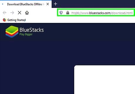 Navigate to https://www.bluestacks.com/download.html using a web browser. You can use any web browser. This is the web page to download Bluestacks.