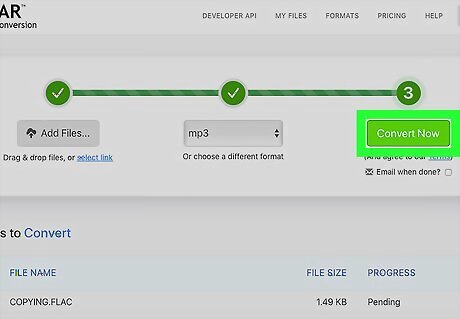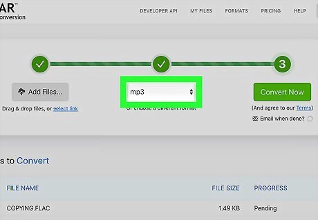 Make sure MP3 is the selected conversion. In Step 2 of the Zamzar website, you can choose which file format you want to convert your file to. Since MP3 is the most commonly used format, you’ll want to pick that. You will most likely lose some quality of the FLAC file when you convert to MP3, since MP3 is a compressed file format and generally loses audio information as it compresses.