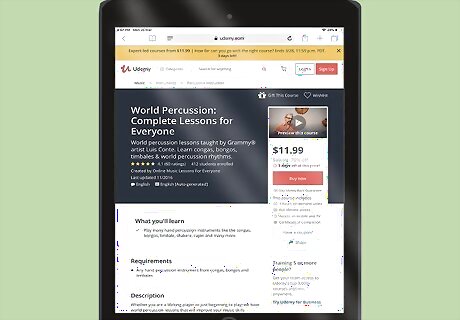 Sign up for an online conga class to learn from home. There are many free or affordable online music classes. Search online for a course that meets your skill level and budget requirements and sign up for it. These online music courses usually break down courses into easily digestible video classes, so you can learn on your own time.