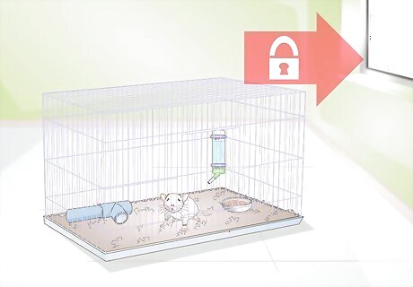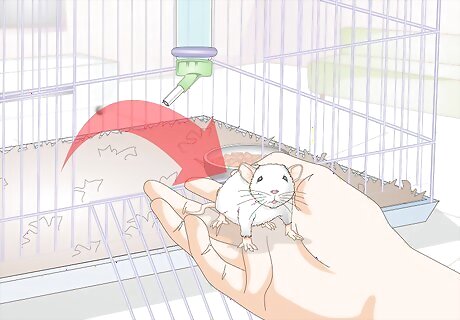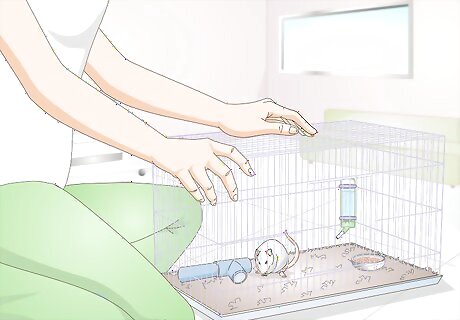 Place their cage in a central area of your home or room. To become socialized, gerbils needs to be around people more than they are not. Do not let gerbils out of their cage to roam freely until you are able to hold them!