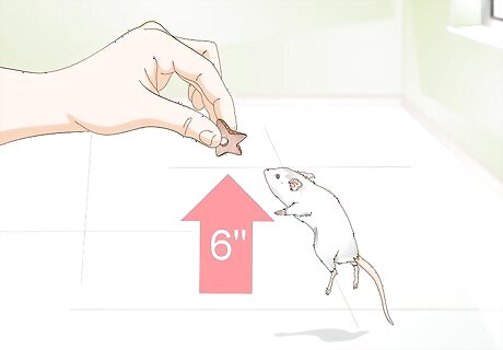 Train them to jump up for treats. Gerbils can jump 18 inches across and 6 inches high, and can even change direction in mid-air. Hold a treat in your fingers up high to encourage jumping. Hold a treat several inches away and a couple inches high to encourage a long jump.