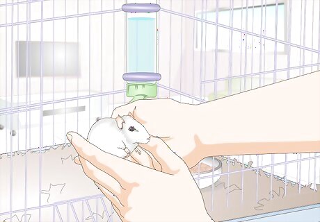 Use both hands to “scoop” up your gerbil if you have to pick them up. It is better to let them come to you, but if you need to pick them up, cup your hands and place one on either side of them. Move them slowly together so that they have to step up into your hands. This method lets them know what is going on and allows them to decide to let you pick them up.