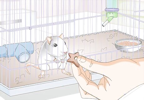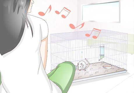 Sit near your gerbils' cage and talk or sing to them. If your gerbils won’t come near your hand, spend some time each day sitting near their cage and talking to them so they can observe your movements and get used to your voice. You don’t have to speak directly to them, but talk or sing out loud (but not loudly) so they become comfortable with your voice.