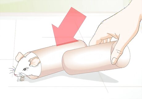 Prepare a safe environment to play in. Gerbils need playtime outside their cage every day. Whenever you open the cage, make sure you are in an enclosed area with few hiding spaces so that your gerbil can’t run away. Check that all windows and doors are closed before opening the cage and make sure no electrical cords are within reach. It’s best not to let your gerbils out of their cage until you are able to hold them. If they do manage to find a hiding place, it’s best to wait for them to come out on their own rather than forcibly grab them. A great place to let them play is in an empty kiddie pool.