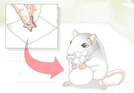 Make your gerbil a present! Wrap a treat in a few tissues and paper to make your gerbil a special toy. Make sure to use clean, white tissues with no lotions or added scents! Put treats in the middle, fold tissues in half, and roll up like a burrito. Tie the end of the tissue pack into a loose knot and put inside a toilet paper tube. Stuff a tissue into each side of the roll, so that the treat is in the middle. Place the roll on a sheet of white paper and roll like a burrito. Twist the ends like a candy wrapper and present to your gerbil.