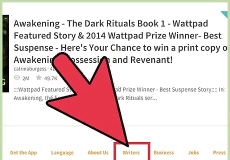 Find the tab for writers. Go to the main page of the Wattpad website. The main page of the website is primarily designed for readers and people who want to sign up to be readers. However, you will find a small button, generally at the bottom of the page, to take you to the writer's page, which provides you with information you may need about Wattpad.