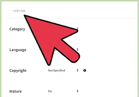 Choose tags. Tags are short keywords that describe your story. Tags are used all across the web to help people find what they are looking for. Pick tags that cover your setting, genre, and tone of your story. For instance, for a camping ghost story, you might include "ghost," "haunted," "campfire story," "scary," "spooky," "West Coast," "California," "woods," and "camping." You can add tags by clicking "Add a Tag" under the description box.