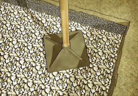 Prepare your subbase. Your subbase is another word for any material on which the concrete rests. Usually, granular fill or road base is used as a subbase, although in some rare cases, soil itself can be used if it is extremely compacted and stable. The soil underneath your subbase is called your subgrade, and your concrete is only going to be as strong as your subgrade. Think about it: If your subgrade shifts, craters, or otherwise moves, the integrity of your concrete is going to be compromised. Make sure your subgrade is properly compacted and stabilized before adding the subbase. Many professionals choose open-grade stone or closed-grade fine-grade stone for their subbase. Open-grade stone lack the smaller stones, giving water a way to pass through. Plus, it's less expensive. On the downside, it doesn't really compact as well as finer-grade stone. Finer-grade stone is compactable but tends to be more expensive. Lay a 4–8 inch (10.2–20.3 cm) thick subbase with your chosen material, and then compact it with a hand tamper or a plate compactor. Plate compactors can be overkill for small, DIY projects, but offer more power in the compacting process.