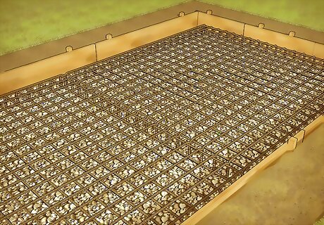 Add wire mesh or rebar to the inside of your form for support. Reinforce your concrete with wire mesh or rebar, especially on heavy load-bearing structures, such as driveways. This gives you concrete greater structural integrity. Wire mesh will help guard small cracks growing and spreading, as well as offer stability across two axes (wire mesh is welded, where rebar is often tied together). Rebar may offer better structural integrity, and be better for higher load-bearing surfaces. On the flip side, it doesn't do much to minimize the appearance of cracks that do appear.