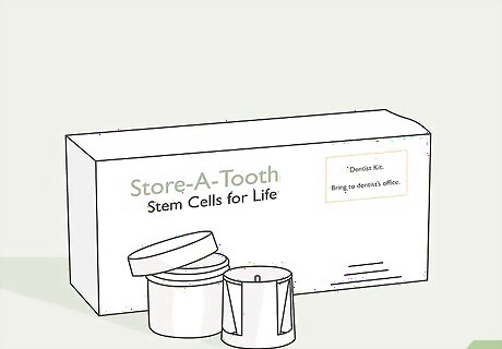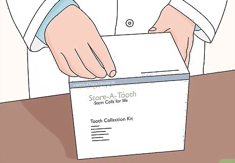 Give your dentist the kit from the tooth bank if necessary. Some dentists have storage materials on-hand for shipping teeth. However, if your tooth bank has sent you a kit with the shipping materials, give it to your doctor on the day of your appointment. Most tooth banks offer collection kits but some suggest that you ask your dentist about tooth storage options.