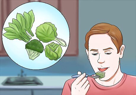 Eat dark, leafy green vegetables. Studies have shown that you can prevent cataracts by eating dark, leafy green vegetables that contain antioxidants. Antioxidants, like the lutein and zeaxanthin (which are both found naturally in the retina and lens) are proven to work against cataract formation. They absorb harsh light and UV rays. If you supplement, try to get more than 6 mg of lutein and zeaxanthin a day. Good sources of antioxidants include: Kale Spinach Collard greens Turnip greens Dandelion greens Mustard greens Beet greens Radicchio Summer and winter squash