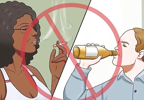 Avoid smoking and drinking. Smoking makes it harder for your body to repair damage since it releases free radicals into your body. The more free radicals that are in your body, the more cells are harmed which could contribute to cataract formation. You should also avoid having more than one drink a day. Studies have shown that alcohol decreases calcium stability in the lens of your eye. Alcohol also changes the eye's protein interaction which will increase your risk of membrane damage.