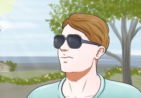 Protect your eyes from the sun. Wear sunglasses and a wide-brimmed hat if you need to be outside. Choose sunglasses that are polarized to reduce eyestrain from glare sensitivity. They should also have an ultraviolet element to protect your eyes from UVA and UVB rays. These rays can cause cataracts, with UVB rays also potentially leading to macular degeneration. You should also try to stay indoors between the hours of 11am and 3pm. If you're getting total radiation body treatments (like those used for cancer treatments), you also need to protect your eyes. Wear goggles or other eye protective shields recommended by your doctor.