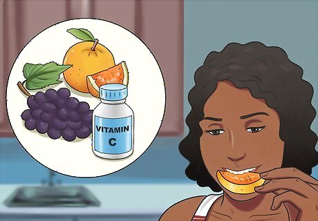 Get vitamin C. Vitamin C can improve eye health and prevent the formation of cataracts. Medical studies recommend that you get vitamin C from your diet, rather than from supplements. While supplements can help prevent cataracts, you'd need to take them for nearly ten years before noticing any of the health benefits. If you choose to supplement, follow the recommended daily allowance (90 mg for men, 75 mg for women, 35 mg for smokers). Instead, eat the following fruits and vegetables: Cantaloupe Cauliflower Grapes Lychees Squash Broccoli Guava Bell peppers Oranges Strawberries