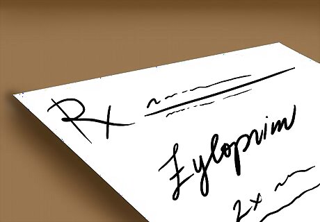 Get a prescription from your doctor to alleviate uric acid stones. Allopurinol (Zyloprim, Aloprim) keeps your urine alkaline and reduces the uric acid levels in both your blood and urine. Sometimes the allopurinol and some kind of alkalizing agent can be combined to completely dissolve the uric acid stone.