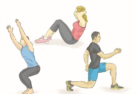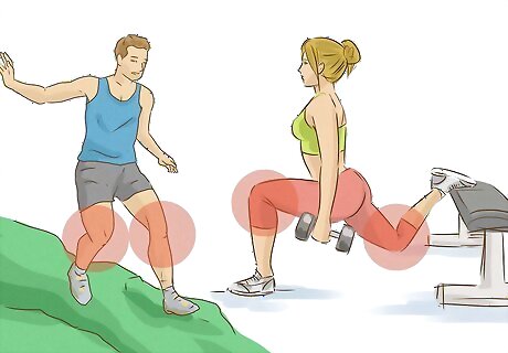 Work your hips and core to provide more stability for your body. Strong hips also help support healthy knees, so make sure you're working them 2-3 days per week. Take at least a 24-hour break between hip and core workouts, but it's okay to work other muscle groups or do cardio on those days. Here are some exercises to try: Do floor exercises like abdominal curls, crunches, push ups, and leg lifts. To really work your hips, try lunges and side squats. You can also do yoga.