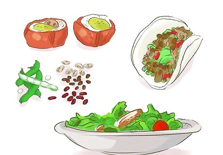 Work to achieve or maintain a healthy weight. Losing 10 lb (4.5 kg) can cause a 20% reduction in knee pain if you’re overweight and have arthritis. If you’re overweight but don’t yet have knee pain due to arthritis or another condition, losing weight in a healthy manner is a great preventative measure. Work with your doctor to determine if you should lose weight, what your weight loss goal should be, and how best to achieve it. If you’re already at a healthy weight, don’t try to lose additional weight without your doctor’s guidance. Opt for slow, steady, healthy weight loss—averaging about 1 lb (0.45 kg) per week—by exercising regularly, eating fewer calories, and choosing nutritious foods like fruits and vegetables, lean proteins, whole grains, and healthy fats.