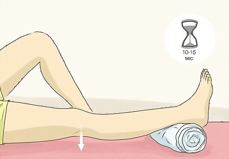 Improve your range of motion with prone knee flexes. Lie down on your back, either on an exercise mat on the floor or in a bed with a firm mattress. Place a small pillow or rolled-up towel beneath one ankle. Slowly flex the knee of the elevated leg slightly downward and hold the flex for 10-15 seconds. Do 10-15 repetitions (reps), then switch legs. Ask your doctor or physical therapist before doing this exercise, and don’t do it if it causes you discomfort or pain. Do this exercise once per day unless otherwise recommended.