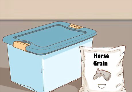 Store grain and feed securely so that horses can’t get to it. Horses like to eat, and if they find a bag of oats left unattended, they will consume all of the food that they can find, which could cause laminitis. Use plastic storage bins with locking tops. This will keep horses as well as rats, mice, and other rodents out of the grain. Keep the grain containers behind a closed door, such as in a tack room or storage shed.