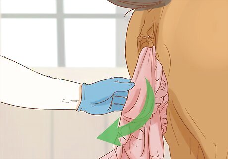 Ensure that the placenta comes out of a mare after it gives birth. If any part of the placenta stays inside of the mare after she gives birth to a foal, it can cause a serious internal infection. If left untreated, this infection can cause laminitis (among other life-threatening conditions). So, watch closely as your mare gives birth and confirm that she produces a placenta. If you have a vet on hand during the birth, they can also look for the placenta. The placenta is about 2 by 2 feet (0.61 m × 0.61 m) and has a pink, reddish color. It’s covered in veins and has a thin, white, “bag”-like structure at 1 end. After the placenta comes out, put it in a bucket for safe-keeping so that your vet can examine it when they come to check the foal. The vet will be able to tell you if the entire placenta came out. If your mare doesn’t produce a placenta within 2 hours after giving birth (and you don’t have a vet on hand), call a veterinarian immediately. This is a medical emergency.