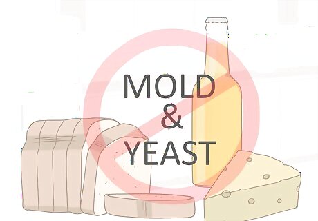 Lower your intake of foods that contain high amounts of mold and yeast. Foods that contain mold and yeast can lead to Candida yeast overgrowth in the body and increase your risk for thrush. Avoid consuming processed and refined carbohydrates such as breads and pastries, lower your intake of cow’s milk and cheese, and stop consuming alcoholic beverages high in yeast content, such as beer and wine.