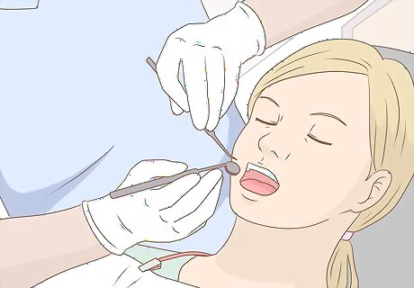 Make regular dental visits. How often you need to visit the dentist may depend on your own specific dental health. You should be going once or twice a year regardless to have a regular cleaning. Your dentist can provide a much more thorough cleaning than you can at home, which will decrease your likelihood of getting thrush. Ask your dentist how often you should make appointments. They will have a better idea, based on your medical history, how much care you’ll need.