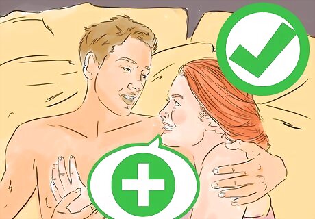 Communicate during intimacy. If you dissociate or start to feel anxious during sex, let your spouse know. If you need to stop or do something different, tell them so. Don’t just wait and hope your spouse realizes what you need–good communication is a big part of feeling safe during intimacy. Despite being clear about what you do and don't want outside the heat of the moment, it can still be helpful to talk with your spouse during intimacy. For instance, you might say things like "Yes, that feels good" to express your pleasure.