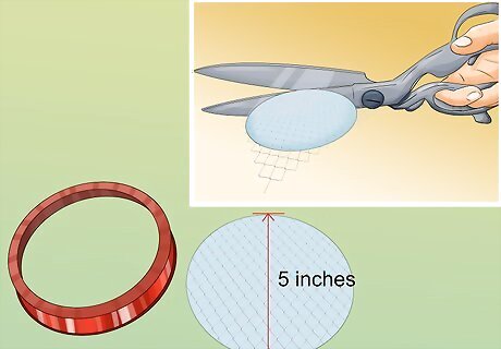 Cut a hardware cloth circle. Using the tin snips, cut a circle in the hardware cloth that is one inch bigger than the diameter of the stovepipe. Then, cut a small hole in the middle of the hardware cloth circle. The size of the hole should be the size of the mounting pole’s diameter. For example, if your mounting pole is .5” in diameter, then cut a .5” hole in the middle of the hardware cloth.