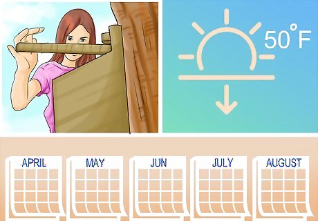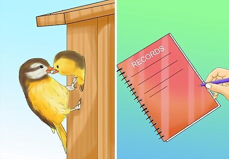 Check the box in the afternoon. Avoid checking the box in early morning and dusk. Also, avoid checking the box during wet and/or cold weather, especially if it is less than 50 °F (10 °C) outside. Instead, check the box during calm, dry weather conditions. Remember that you only need to monitor the box during nesting season, i.e., late March through August. Avoid checking the box 12 to 14 days after the bird's eggs have hatched. Checking the box during this time can cause premature fledging. Do not check the box too frequently, i.e., every day. Instead, check the box only once or twice a week, or every seven to 10 days. How frequently you check the box depends on how serious predator problems are, how much data you want to collect, and how much time you have.