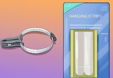 Take your mounting pipe and hanger strips. Using the machine screws and nuts, bolt the hanger strips together and securely around the center of the pole. Bolt them no more than a foot from the top of the pole—the top of the baffle needs to be at least four feet off the ground. Then, bend the edges outward. These edges will support the stovepipe baffle. Place duct tape or a radiator hose clamp around the pole and underneath the hanger straps to hold them in place better.