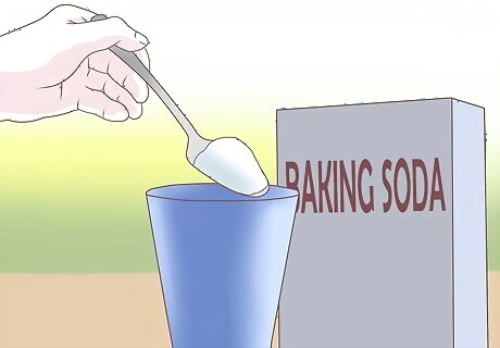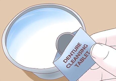 Mix baking soda and water to form a cleansing solution. If you don’t want to purchase a denture cleanser, you can also try plain old baking soda. To start, dissolve 1 teaspoon of baking soda in 8 ounces of water.