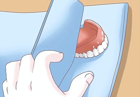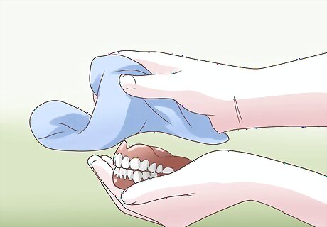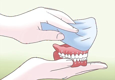 Pat dry. Use a towel or other cloth to gently dry your dentures.