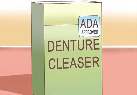 Purchase a denture cleaning product. If stains form on your dentures, you can purchase a denture cleanser from a drugstore or supermarket. These cleansers are available in cream, gel, and liquid formulas, and they work for full and partial dentures. Look for a product approved by the American Dental Association, as these cleansers are proven to be safe and effective.