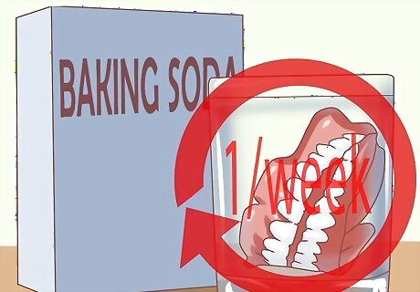 Repeat no more than once a week. You can use this method to clean your dentures regularly, but don’t do it too frequently. Baking soda itself is somewhat abrasive, and it can scratch the surface of your dentures. Limit yourself to once weekly.