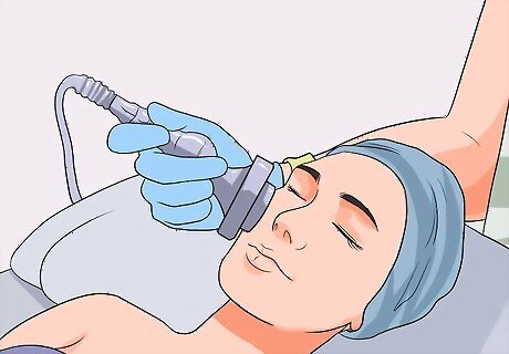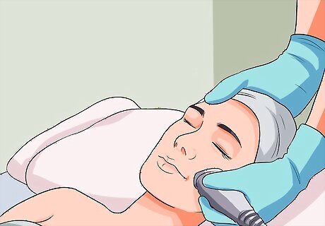 Try dermabrasion. Dermabrasion involves a dermatologist carefully smoothing down the outer layers of your skin, called planing, with a rotating electric brush. Once the outer layer of skin is gone, a new layer will grow over the affected area with a lighter pigment. Be aware, though, that dermabrasion can leave your skin red and may cause the affected area to temporarily form a scab. Only use approved dermabrasion products if using this option at home. Attempting to smooth down your skin with a device that was not intended for dermabrasion could cause permanent skin damage.