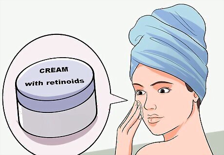 Treat your sunspots with retinoids. Retinoids are derived from vitamin A, and studies suggest these topical treatments can help improve a variety of skin conditions. Tretinoin and other retinoids may be able to help reduce sunspots and other skin damage that was caused by UV radiation. Be aware that retinoid use may cause your skin to get dry, red, and irritated, and may result in peeling skin.