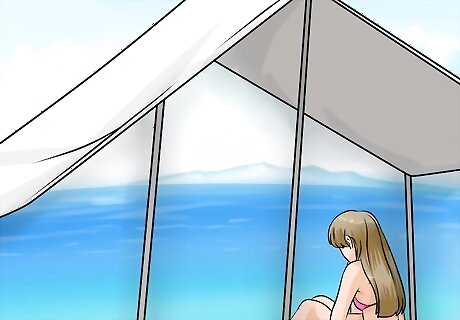 Stay out of the sun during peak UV hours. Ultraviolet rays are strongest and most intense between the hours of 10:00 am and 3:00 pm. If at all possible, try to avoid going out into the sun during those peak hours. If you must go out during that time, make sure you take preventative measures to protect your skin from UV radiation.