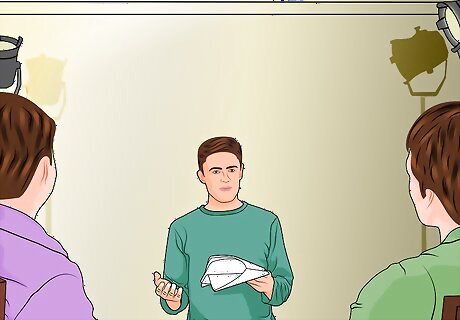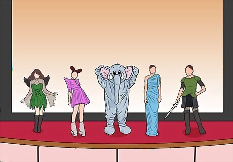 Arrange for the creation or purchase of sets, costumes, and props. Specially-designed props, sets, and costumes can take lots of time to produce. The construction of especially-complicated set pieces, for instance, may even need to begin before the actors start rehearsing! As the producer, you'll need to hire, coordinate, and delegate designers and technicians to bring your play to life. If your production is strapped for cash, you don't necessarily have to create every physical aspect of your play from scratch. You might, for instance, organize a drive for old, out-of-fashion clothing as a source for costumes. You might also petition for volunteers in the local community to help you build your sets. Theater can be a great opportunity to bring your community together towards one fun, entertaining purpose.