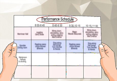 Create a performance schedule. Usually, theatrical productions aren't just performed once. Large productions at major theaters can play several days a week for months at a time, but even smaller productions usually have a theatrical "run" consisting of multiple performances. As the producer, you'll need to decide on a schedule of performances that takes into account holidays, your staff's commitments, and market forces like seasonal theater attendance and so on. Try to run your play for as long as you believe you'll be able to sell enough tickets to make a profit - if your play sells out, you can always add extra shows.