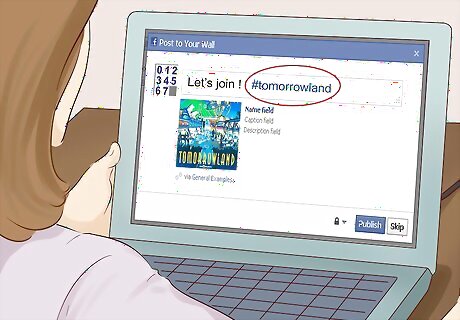 Develop a specific hashtag for the festival. In order to get a large audience for your updates on social media, you need to create some buzz around the festival. As more people are talking about it, it's important to create a way for others to see all the talk. One way to do this is to create a hashtag that people will use when sharing about the festival. When other people see the posts and want to find out about the festival, they can search for the hashtag and find out more information. For example, if you are promoting a scary film festival you can create a hashtag like "#scaryfilmfest" or "#scaryfilmfestAustin." When initially posting on social media about your event, make sure that your hashtags are on every post. This will encourage others to follow suit and include them as well.