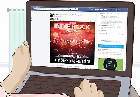 Make an event page on Facebook. Social media is a great tool for promoting a festival. However, if you simply share a post on your social media feed, many people won't get your message. Instead, you should create and share an event so more people will see it. An event page can also be helpful for keeping potential festival goers updated about festival details and will remind them about the event as it draws near.