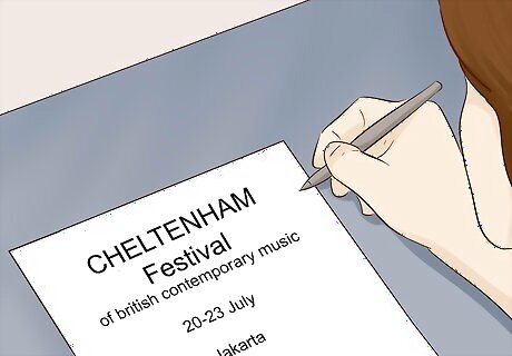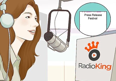 Do interviews on TV and the radio. Contact local TV and radio stations and tell them that you would like to talk about your festival on their programs. Many local programs search out this kind of content, as it is free for them to produce and is of interest to their listeners and viewers. When doing an interview about your festival prepare beforehand by memorizing the date, time, and overview of the festival. Also have a few stories worked out before the interview, such as how the festival got its start and why you are personally involved in promoting it.
