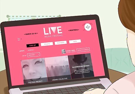 Create a website for your festival. Every festival should have a website where people can find details that won't be available in advertisements and social media. This is a central point of information that you will link to in every other type of promotion. Your festival website should be both attractive and easy to use. You want people to be attracted to it visually but you also want them to easily find the information that they need. Consult with a web designer to have your website built. If you have enough money in your budget to hire a professional, do that. If not, see if anyone involved with your festival has experience building websites or knows someone who would do it for free or in exchange for advertising at the festival. You can also use a website creator, such as WordPress, Wix, and Squarespace, to make your own website.